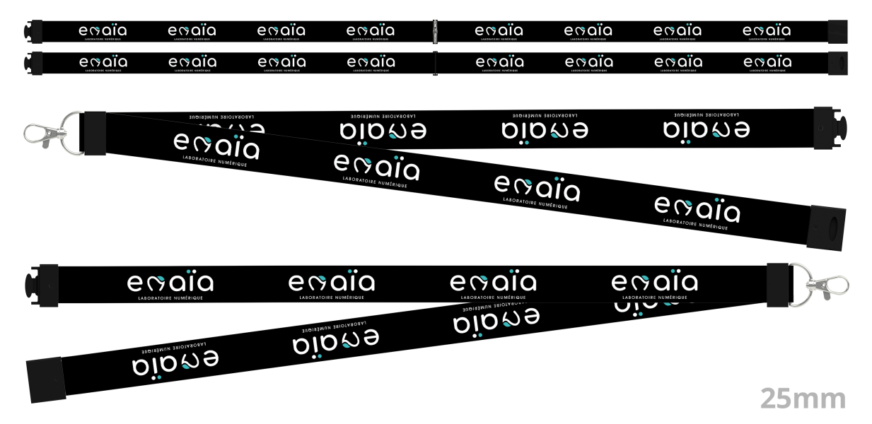 Le modèle Conference est fabriqué à partir de polyéthylène recyclé, respectueux de l'environnement. Les deux faces de la lanière peuvent être imprimées avec votre design et votre logo, dans les moindres détails. Tout comme nos autres modèles de lanières, la Conference est dotée d'un clip en métal et d'une boucle de sécurité qui se détache rapidement si la lanière est coincée ou tirée.